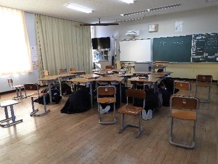 〇屋内にいる教員・生徒が中学校(緊急一時避難施設)にて避難行動を実施
