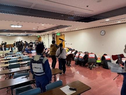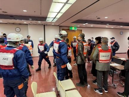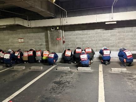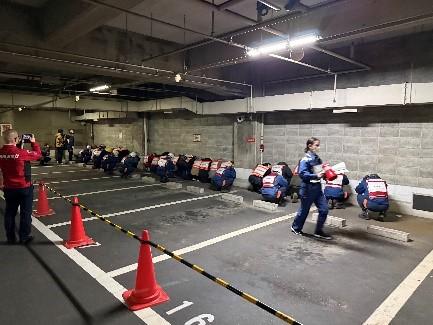 ○屋内にいる利用者がつばき会館の地下駐車場にて避難行動を実施