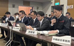 令和4年度から令和7年度までの訓練検討を踏まえ、「輸送力の最大化・具体化」や「要配慮者の避難」を重点課題として住民避難に係る検討会等で整理・検討してきた先島諸島の住民避難の考え方等について、事態認定後の住民避難を見据えた関係機関等連絡調整会議を模擬し、検討状況等を確認する。