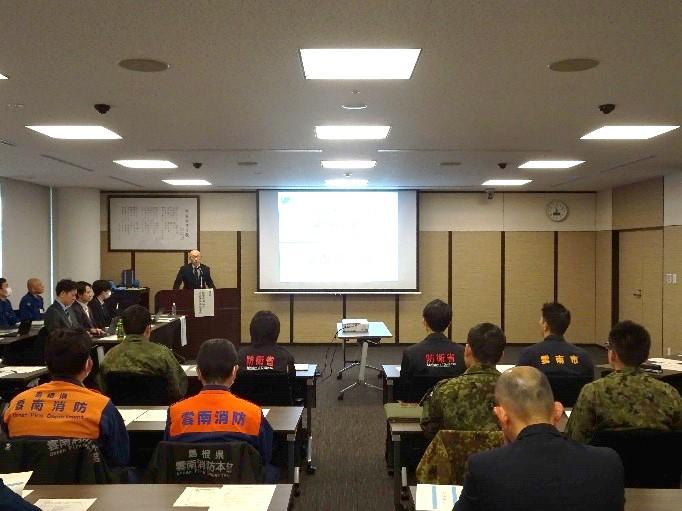 総務省消防庁、島根県、雲南市(消防団等を含む)、島根県警察本部、同雲南警察署、雲南消防本部、自衛隊島根地方協力本部、陸上自衛隊第13偵察戦闘大隊
