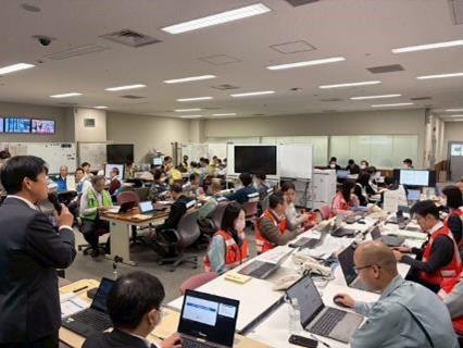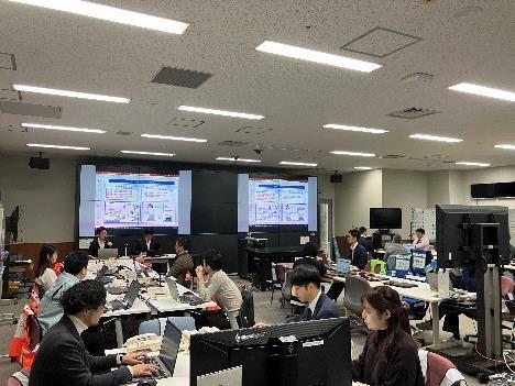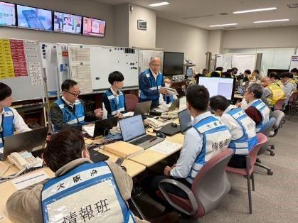 国・府・市対策本部等事務局における国民保護事象発生時の初動対応及び事態認定後の国民保護措置についての手順を確認する。