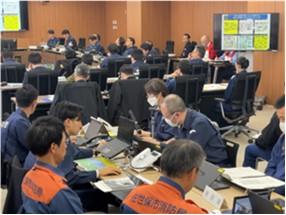 実施日時 令和8年2月13日(金)09:00~12:00 訓練実施場所 佐世保市役所 想定 武力攻撃予測事態における佐世保市域外への住民避難 訓練項目 (1) 国民保護及び住民避難に係る認識統一(2) 市対策本部会議(3) 県・市合同対策協議会(4) 住民避難に係る状況付与(展示訓練) 参加機関等 内閣官房、消防庁、長崎県、佐世保市、長崎県警(佐世保警察署)、佐世保市消防局、陸上自衛隊、海上自衛隊、佐世保海上保安部、平戸市、松浦市、西海市、佐々町(13機関、約75名) 佐世保市対策本部会議 県・市合同対策協議会 住民避難に係る状況付与 住民避難に係る状況付与 訓練評価員講評 市長挨拶